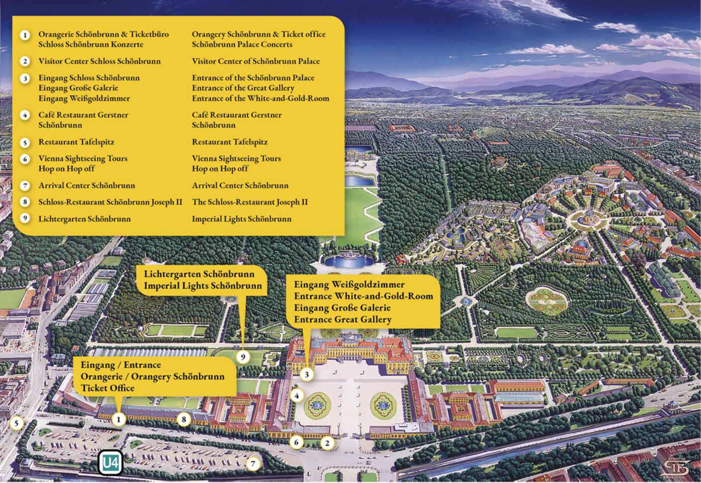 • 领取:在我们的办公时间内(10:00 至 18:30)到我们美泉宫橘园的办公室领取,或从 19:00 起在晚间售票处领取