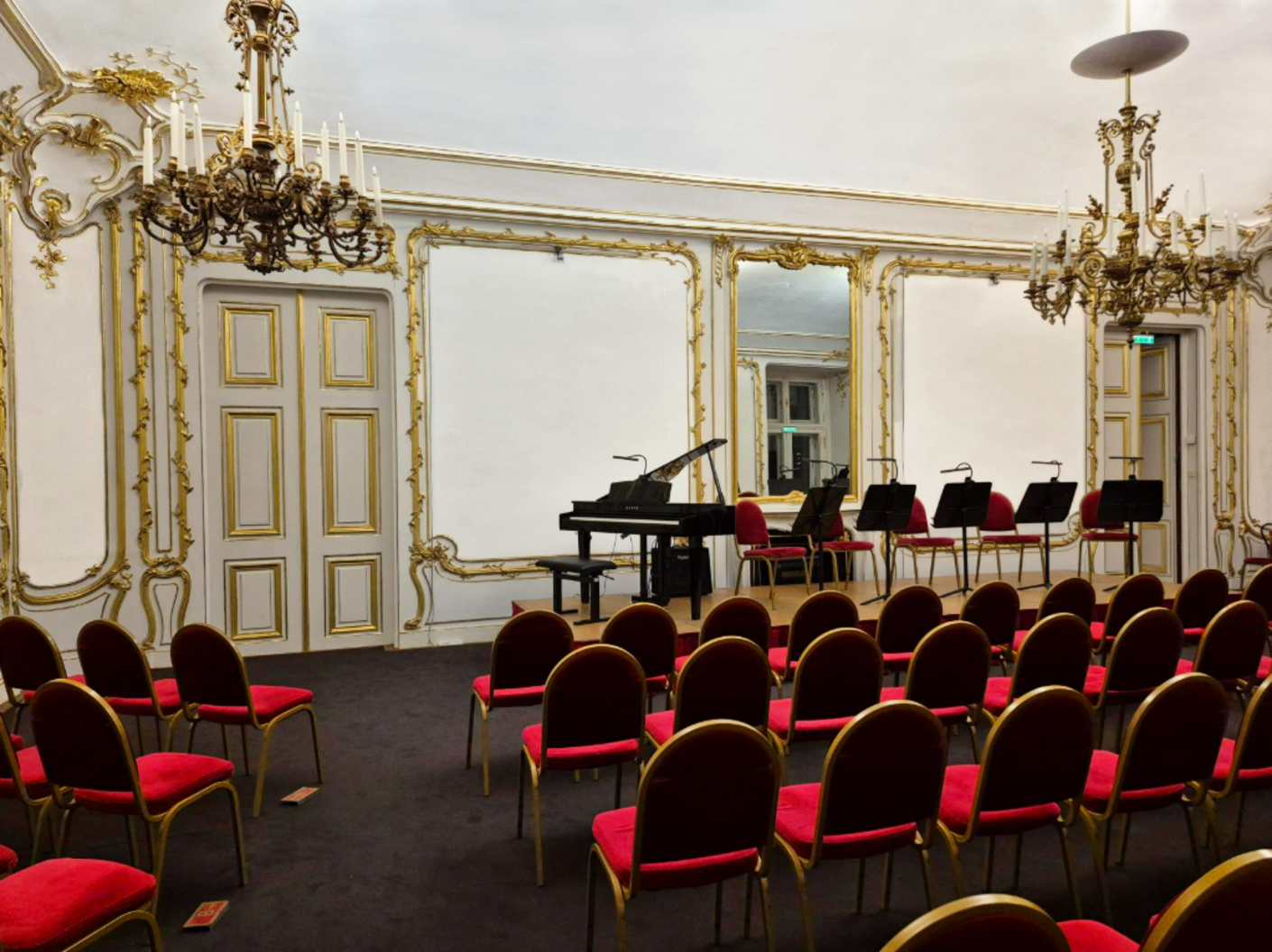 選ばれた日において、シェーンブルン宮殿の本館にある白と黄金の間でコンサートが行われます。このようなアットホームな雰囲気の中で、音楽の演奏を間近で体験できるわけです!