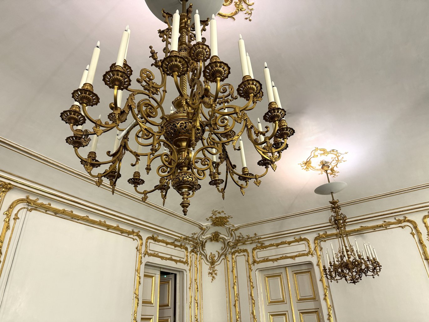 白と黄金の間は、シェーンブルン宮殿の1階にあります。白と黄金色のパネルが施された壁と、様々なロカイユの装飾が施されたこの建物は、マリア・テレジアの時代からのロココ様式の職人技による傑作の1つです。2000年代初頭の修復中に、精巧な幾何学模様を示す、オリジナルの木製フローリングの断片が発見されました。その後、新しい床はこの歴史的なモデルに基づいて作成されています。